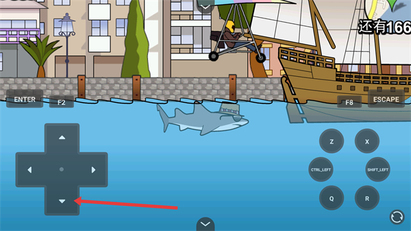 1、使用方向鍵操控鯊魚在水下移動,靠近水面的船只與空中目標,準備觸發(fā)破壞互動。