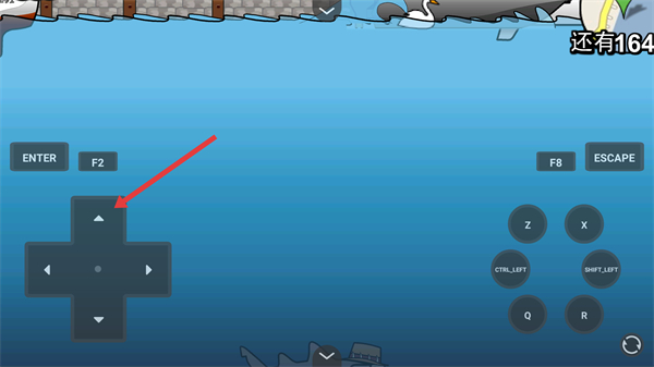 2、調整方向鍵操控鯊魚移動位置,接近水面的可破壞目標,推進關卡的破壞進度。