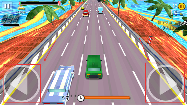 1、3D像素風(fēng)構(gòu)建獨(dú)特街機(jī)競(jìng)速視覺(jué)體驗(yàn),復(fù)古畫風(fēng)搭配流暢駕駛操作,讓玩家在游玩過(guò)程中感受經(jīng)典街機(jī)質(zhì)感與暢快速度對(duì)決。