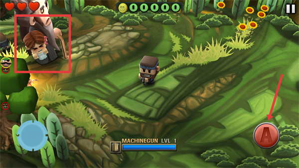 1、進(jìn)入關(guān)卡后,先靠近場(chǎng)景中的NPC(如初始的女性角色),觸發(fā)互動(dòng)獲取初始提示,同時(shí)通過(guò)左側(cè)方向鍵控制角色移動(dòng),右側(cè)【A】鍵進(jìn)行射擊。