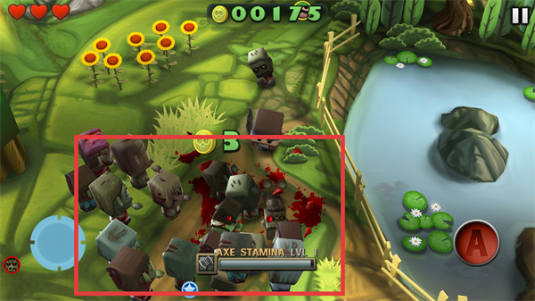 4、面對(duì)大量僵尸圍攻時(shí),利用走位拉開(kāi)距離,配合自動(dòng)瞄準(zhǔn)(若開(kāi)啟)集中火力清理敵人,同時(shí)注意保護(hù)上方的紅心生命值,避免被僵尸近身攻擊消耗。