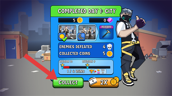 4、完成【DAY-1-CITY】后,點(diǎn)擊【COLLECT】推進(jìn)游戲進(jìn)度。