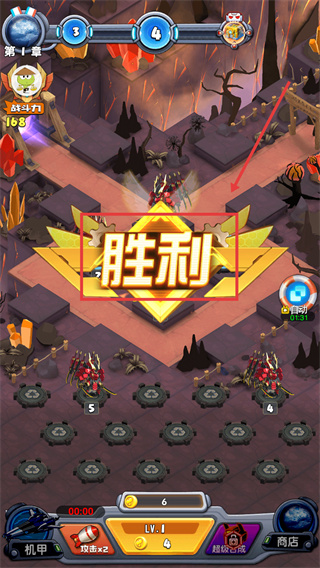 4、完成關(guān)卡擊敗所有敵人后,即可獲得【勝利】結(jié)算,后續(xù)可通過【商店】兌換資源,繼續(xù)提升機(jī)甲戰(zhàn)力。