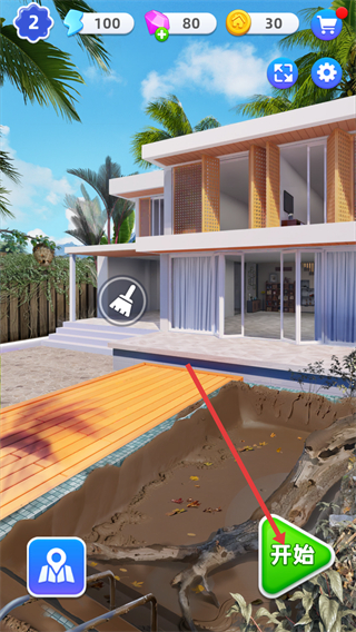 1、點擊【開始】按鈕啟動進入游戲頁面獲取裝修道具,推進該區(qū)域的清理進度。