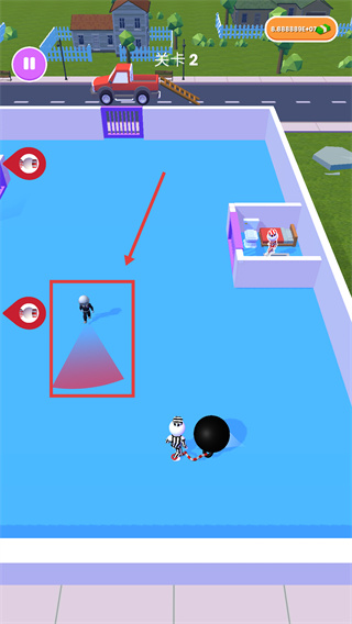 1、先操控角色躲避【紅色區(qū)域-探測(cè)范圍】?jī)?nèi)的目標(biāo),按指引移動(dòng)可推進(jìn)關(guān)卡進(jìn)度。