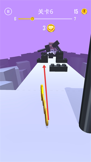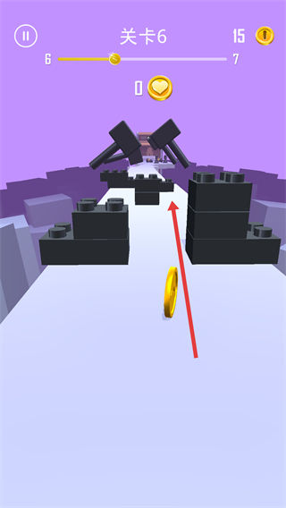 2、在【關(guān)卡6】中,金幣積累至3,持續(xù)避開黑色障礙沿路徑前進(jìn),收集金幣以推進(jìn)關(guān)卡流程。