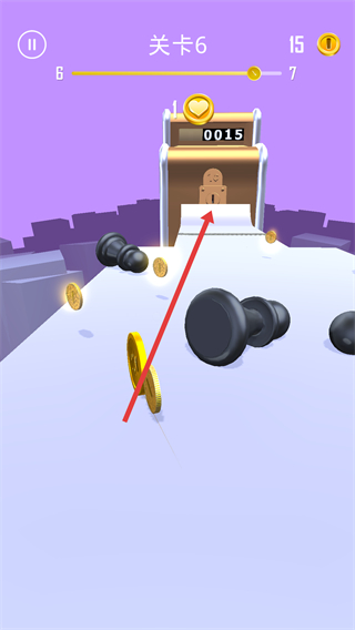 1、處于【關(guān)卡6】階段,操控硬幣道具避開黑色障礙,并沿路徑收集金幣以推進(jìn)關(guān)卡進(jìn)度。