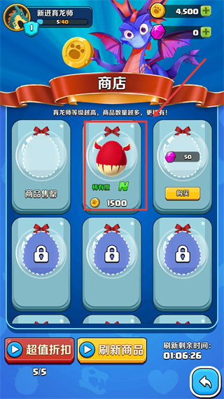 1、在【育龍達(dá)人】中消耗【1500】金幣購買N級龍蛋,育龍師等級越高可解鎖更高品質(zhì)龍蛋。