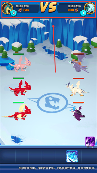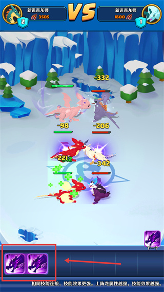 3、龍族對戰(zhàn)界面中關(guān)注【3505-vs-1800】戰(zhàn)力值,同技能龍連接可強(qiáng)化技能效果提升戰(zhàn)力。
