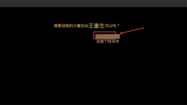 2、面對命名確認(rèn)提示時(shí),選擇【可以】確定大魔的名字為【王重生】,推進(jìn)劇情流程。