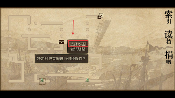 4、遇到史萊姆時(shí),可選擇【選擇攻擊】與其對戰(zhàn),或選【嘗試?yán)@路】避開,根據(jù)策略推進(jìn)迷宮探索。