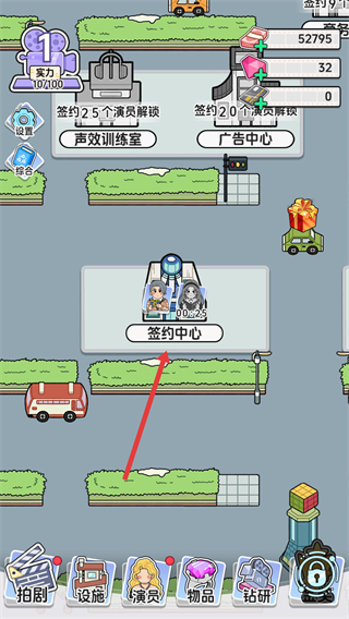 1、點擊【簽約中心】進(jìn)入演員簽約界面,通過簽約演員提升公司資源,為后續(xù)收益鋪墊。