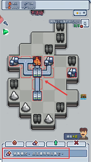 3、切換到【銷售模式】,點擊建成的設施將其出售,獲取收益的同時可調整生產鏈結構。