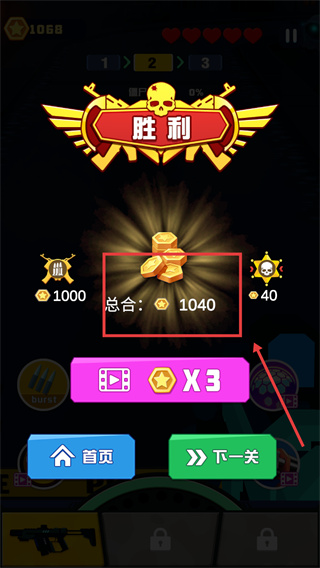 4、通關(guān)后可獲得【總合-1040】星級(jí)獎(jiǎng)勵(lì),點(diǎn)擊【下一關(guān)】按鈕繼續(xù)挑戰(zhàn)更高難度的關(guān)卡。
