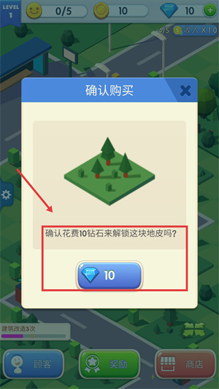 1、解鎖地皮時(shí),確認(rèn)花費(fèi)【10鉆石】操作,前期優(yōu)先解鎖地皮可拓展建筑空間,為后續(xù)布局做準(zhǔn)備。