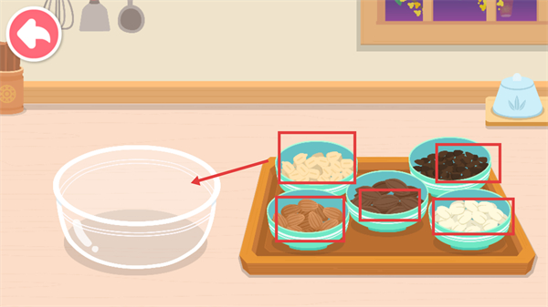 2、選擇所需配料(如堅果、果干),放入容器中與主料混合,完成食材的組合配置,豐富成品的口味。