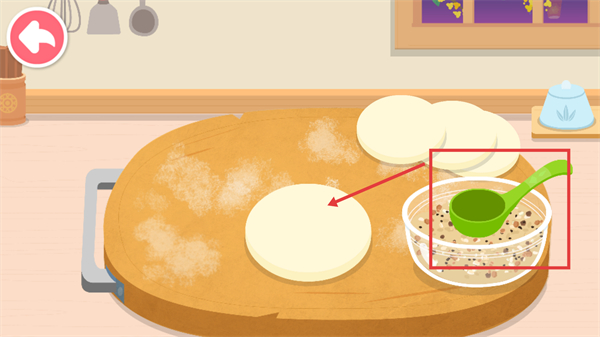 4、包餃子玩法支持包制元寶餃、月牙餃等多種形狀,從調(diào)餡、裹皮到煮熟蘸醋,鍛煉動手能力與對不同形態(tài)的認(rèn)知。